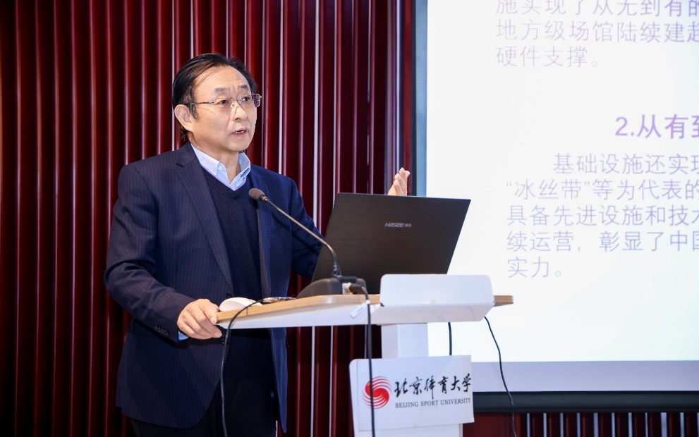 主旨报告环节中,中国体育博物馆馆员崔乐泉教授以“从‘冬奥高光’到‘产业长青’——中国冰雪经济黄金十年新赛道的打造”为题展开阐释。他指出,北京冬奥会的落幕是中国冰雪经济从“赛事高光”迈向“产业长青”的黄金起点。他提出了推动我国冰雪经济发展的三大新赛道:装备制造国产化与智能化、场地运营四季化与多元化、服务与体验数字化与融合化,未来应在下沉市场、践行绿色发展等多方面深入挖掘,破解运营能力不足、人才短缺等挑战,为我国冰雪经济长远发展打下坚实基础。
